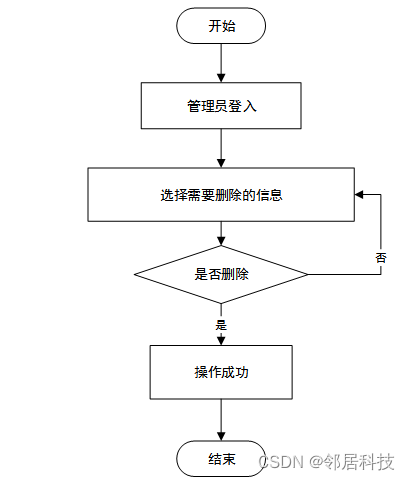 运行的主要流程为,登入管理员用户名,因为只有管理员才有权限进行该操作,然后查看所有注册用户的信息,选中需要删除的用户信息,然后确认删除,即为完成,系统将修改的数据更新至数据库,主要过程如图3-1所示: