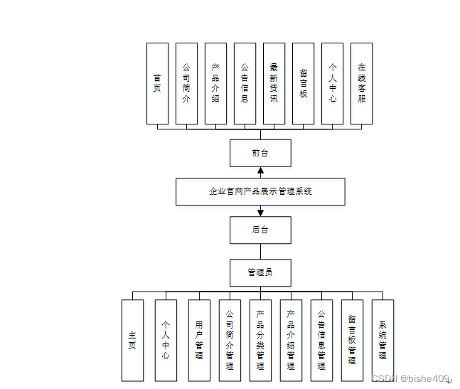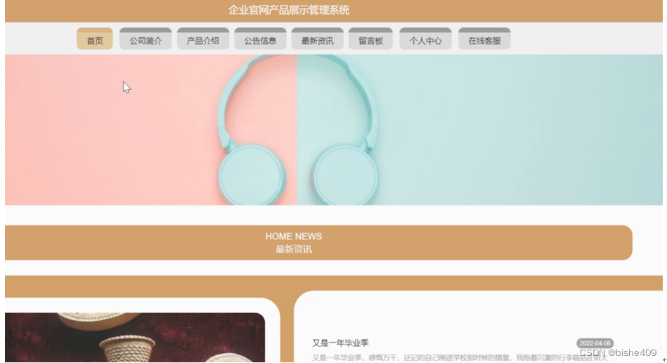 企业官网产品展示管理系统,在系统首页可以查看首页,公司简介,产品介绍,公告信息,最新资讯,留言板,个人中心,在线客服等内容,并进行详细操作;如图5-1所示。