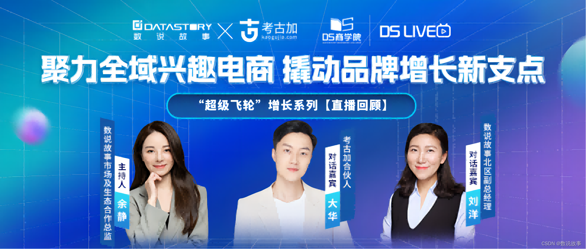 10月20日,由数说故事北区副总经理刘洋联手直播电商操盘手考古加合伙人大华,数说故事市场及生态合作总监余静为主持人,带来了《聚力全域兴趣电商,撬动品牌增长新支点》直播,共同探讨抖音电商的发展逻辑,以及全域兴趣电商的新打法,为奋战双11,在抖音寻求增量的品牌方答疑解惑。