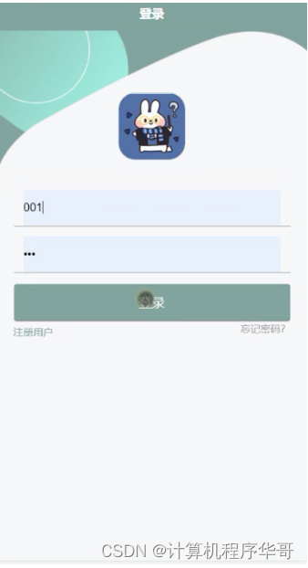 用户登录,用户通过输入账号和密码,并点击登录进行小程序登录操作,如图5-11所示。