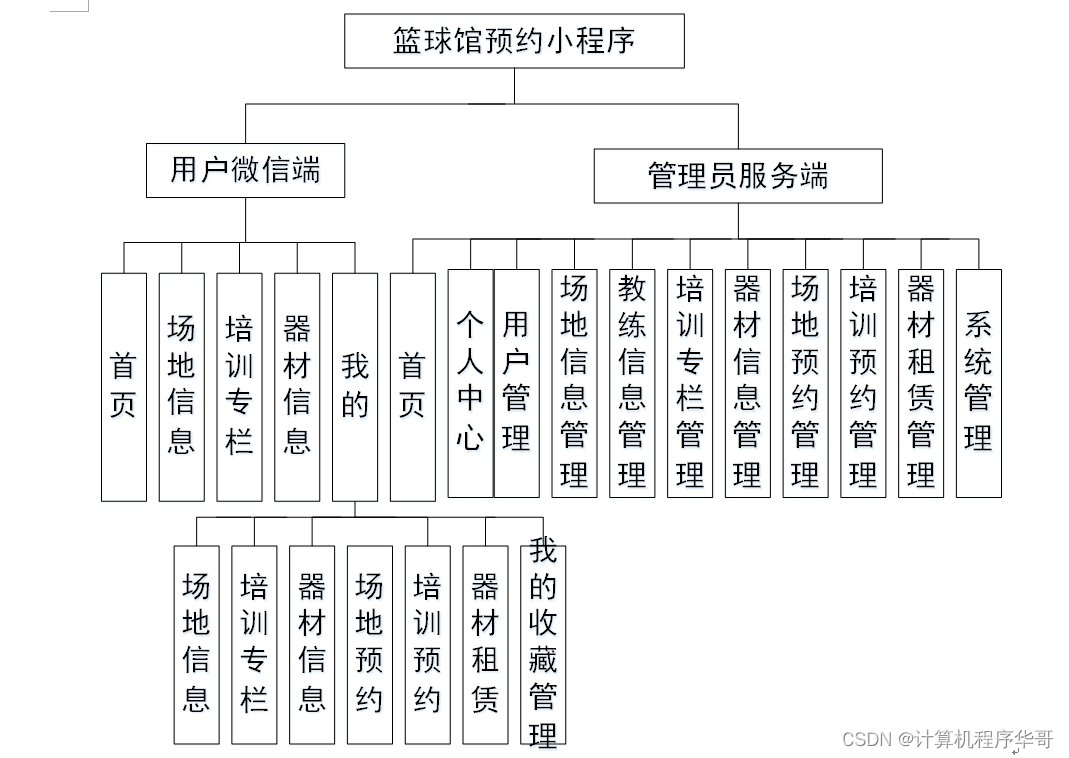 篮球馆预约小程序采用了结构化开发的方法。这种开发方法的优点是控制性比较强,开发过程中采系统总体设计图如下图4-1所示: