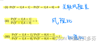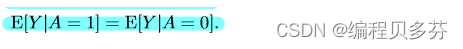 当在处理的 Pr[Y =1|A = 1] 中产生结果的个体比例等于在未处理的 Pr[Y =1|A = 0] 中产生结果的个体比例,我们说治疗 A和结果 Y 是独立的,即 A 与 Y 无关