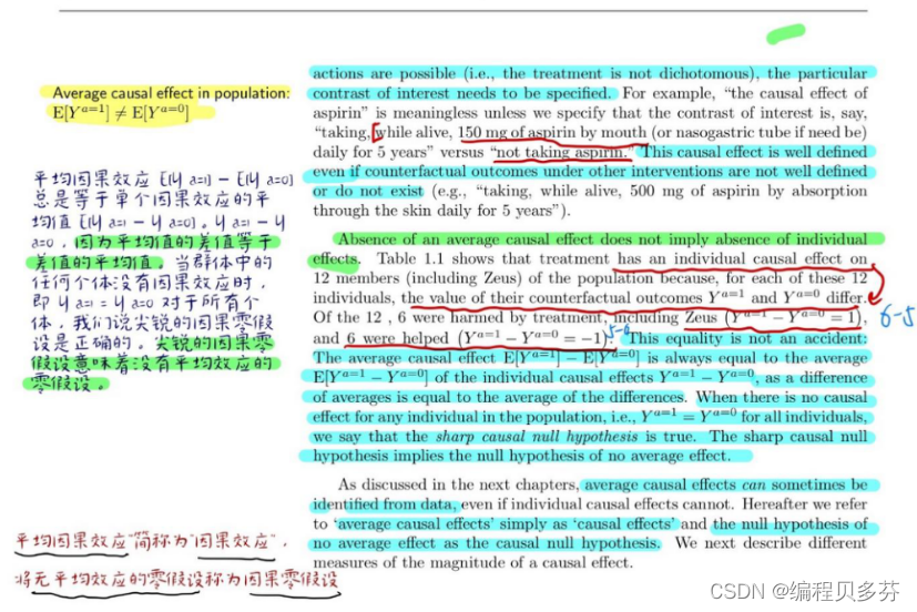 注:将“平均因果效应”简称为“因果效应”,将没有平均效应的原假设称为因果原假设