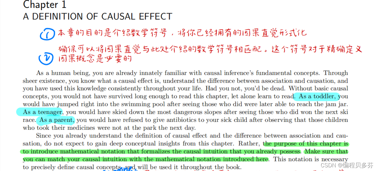 确保可以将因果直觉与此处介绍的数学符号相匹配。这个符号对于精确定义