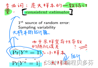 - 样本比例 Pr[Y a=0 = 1] 不必完全等于超级大的群体Pr[Y a=0 = 1]。
