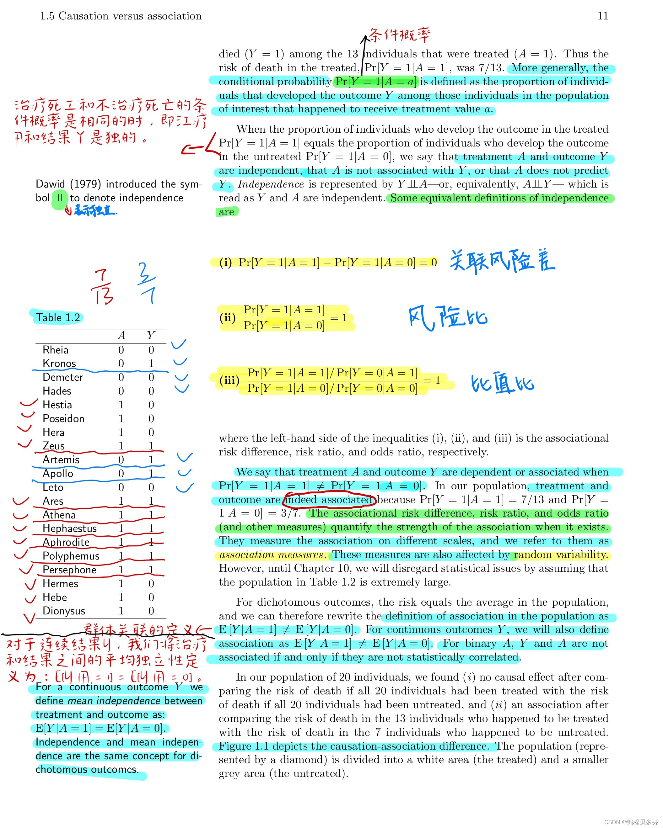 简单点来说:治疗死亡和不治疗死亡的条件概率是相同的时,即治疗A和结果Y是独立的