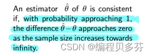 - 我们说 Pr[Y = 1] (HAT)是 Pr[Y a = 1] 的一致估计量,因为样本中除数的数量越大,Pr[Y = 1] 和 Pr[Y a = 1] 之间的差值就越小。发生这种情况是因为由于采样变异性引起的误差是随机的,因此遵循大数定律