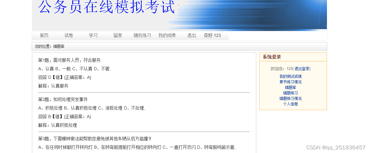 jsp公务员考试系统myeclipse开发Mysql数据库w