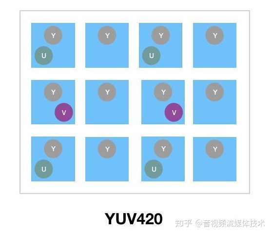 YUV 4:2:0采样,每四个Y共用一组UV分量。