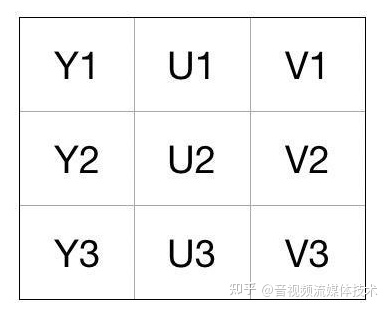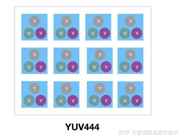 YUV 4:4:4采样,每一个Y对应一组UV分量。