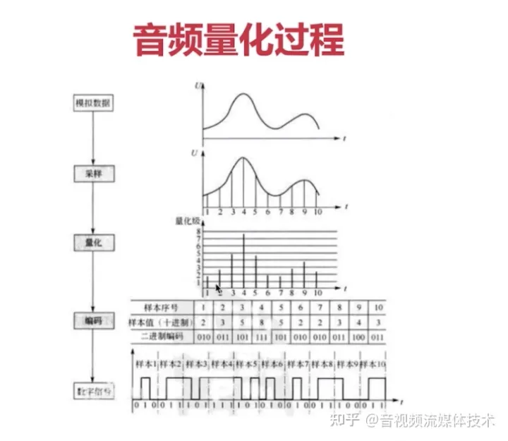 最后就是编码了。由于数字信号是由0,1组成的,因此,需要将幅度值转换为一系列0和1进行存储,也就是编码,最后得到的数据就是数字信号:一串0和1组成的数据。