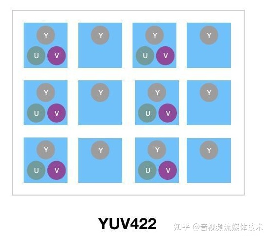 YUV 4:2:2采样,每两个Y共用一组UV分量。