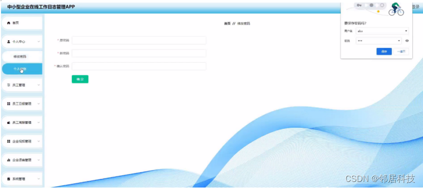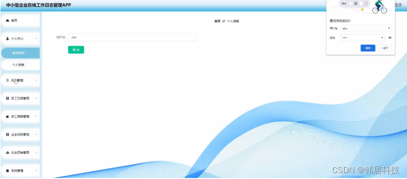 个人中心,在个人中心页面可以修改密码、个人信息修改操作,如图5-3所示。