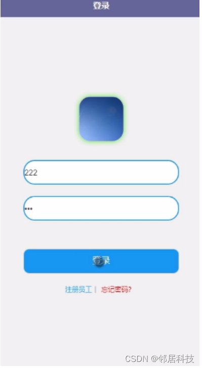 员工登录,员工在登录页面通过填写账号、密码信息完成登录,如图5-10所示。