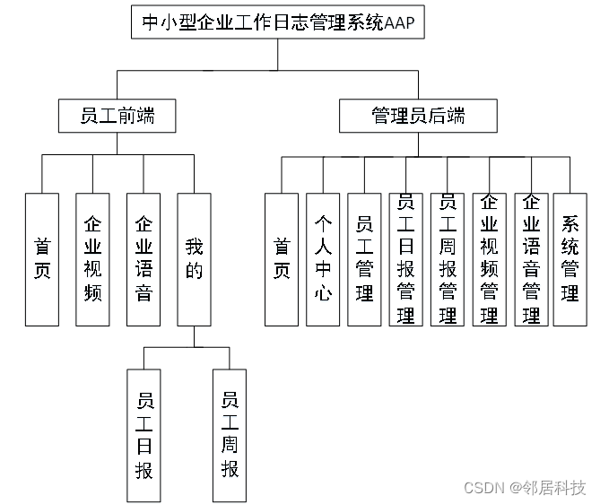 考虑到实际生活中中小型企业工作日志管理系统方面的需要以及对该平台认真的分析,将APP权限按管理员和员工这两类涉及用户划分。