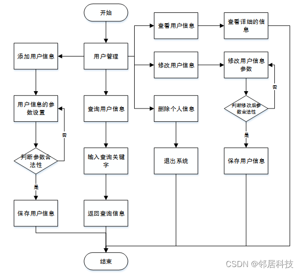 由于不同的系统实际使用用户角色的不同,他们的业务分析也会变得有所不一样,为了论述方便接下来都将以管理员和员工功能权限下的系统业务流程来分析,如下图所展示:
