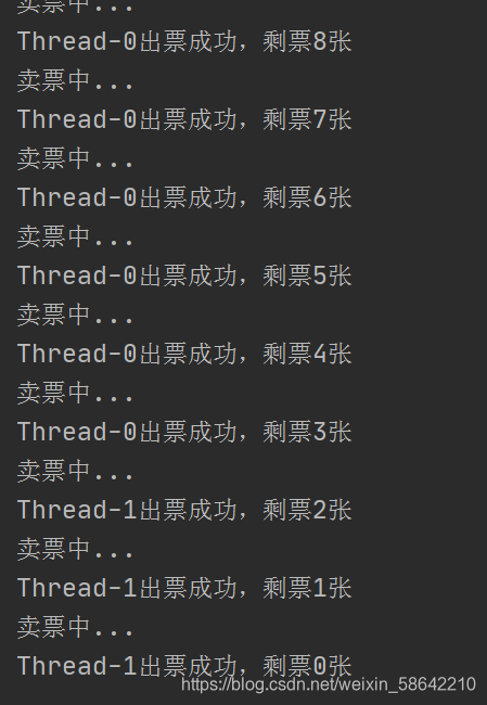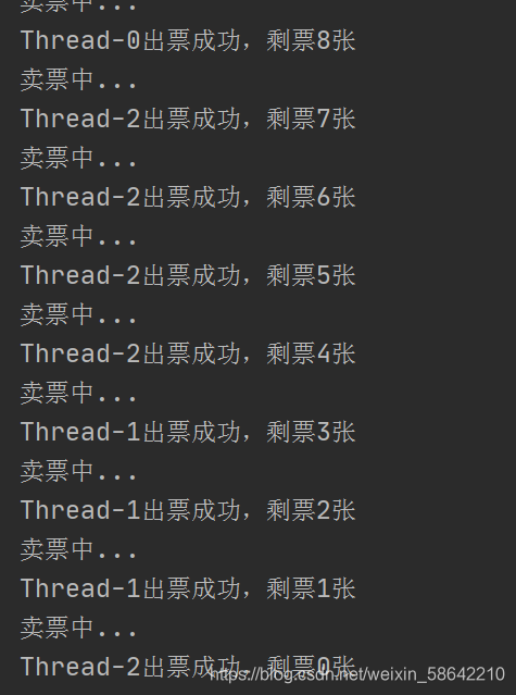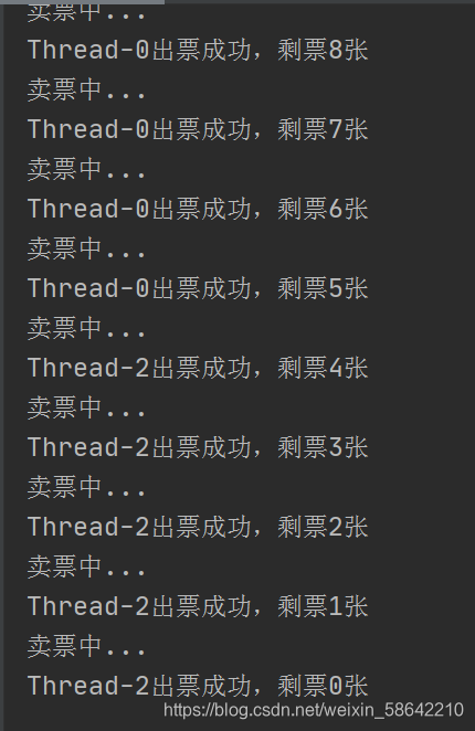 System.out.println(Thread.currentThread().getName() + "出票成功,剩票" + count + "张");