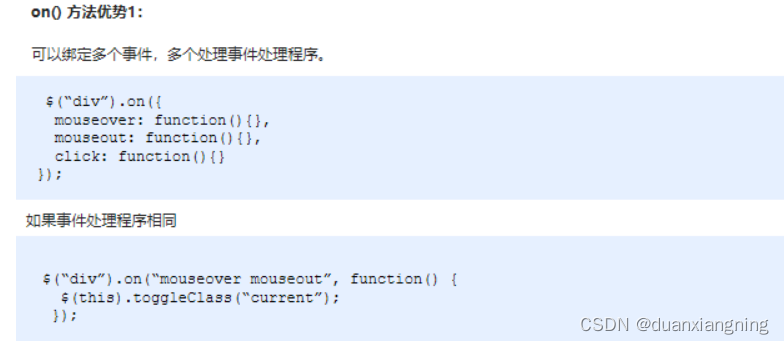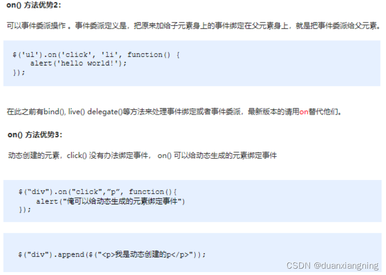 on(): 用于事件绑定,目前最好用的事件绑定方法