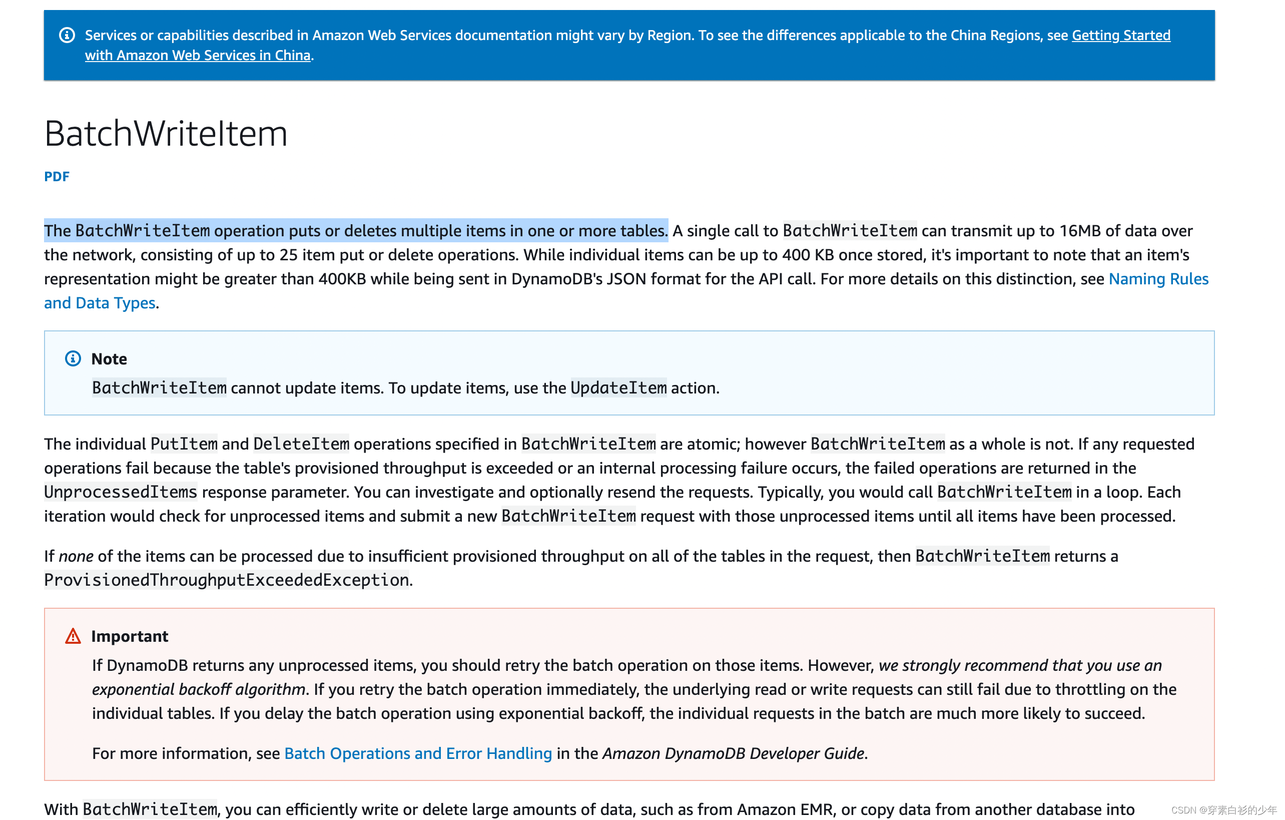 BatchWriteItem // 同时支持删除--- 不得不说 这个方法名很有迷惑性
