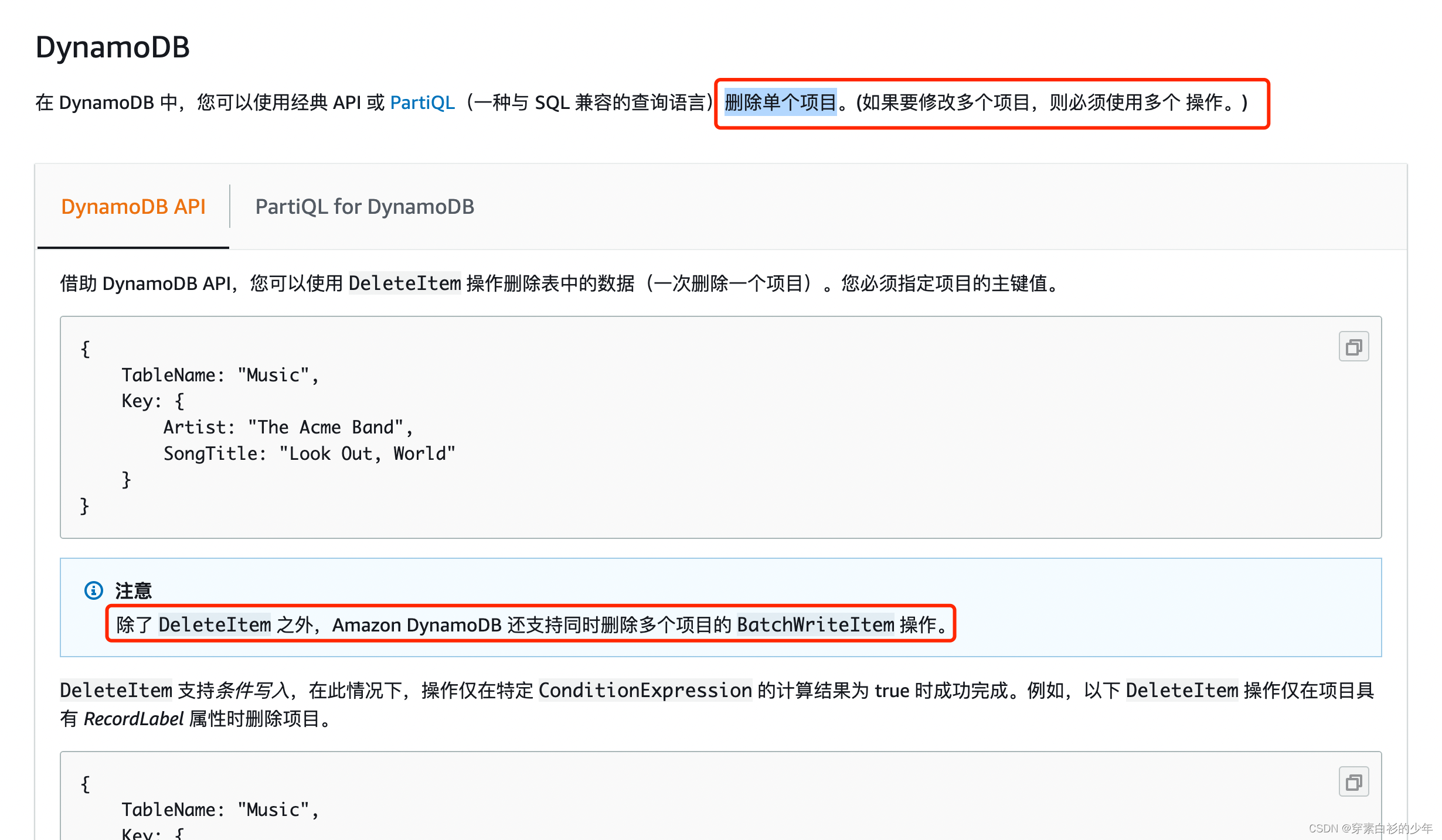 2. 删除item / itemsDeleteItem简单说 方式一: 通过primary key来删除。 方式二: 通过其他条件删除。