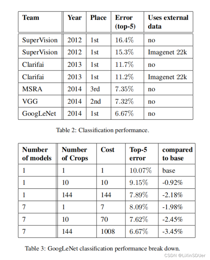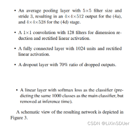 实验表明,辅助分类器(损失以一个折扣权重加到网络的总损失中(辅助分类符的损失被加权为0.3))的影响相对较小(约0.5%),只需要其中一个就能达到相同的效果。