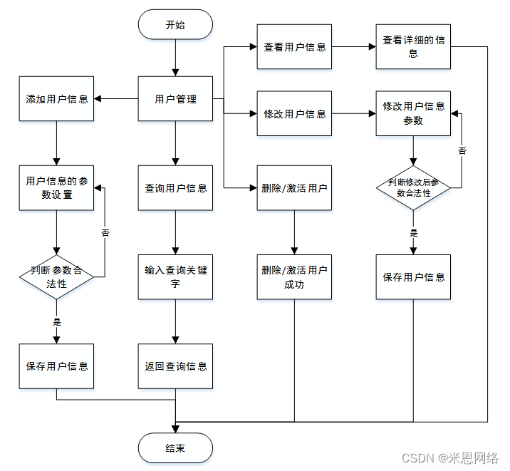 由于不同的系统实际使用用户角色的不同,他们的业务分析也会变得有所不一样,为了论述方便接下来都将以管理员用户功能权限下的系统业务流程来分析,如下图所展示: