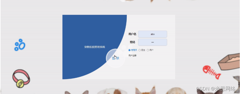 考虑到实际生活中在宠物医院管理方面的需要以及对该系统认真的分析,将系统权限按管理员和用户、医生这三类涉及用户划分。