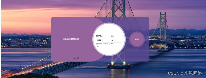 管理员登录,管理员通过输入用户名、密码、角色进行登录进入系统,如图5-7所示。