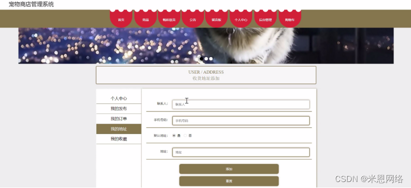 用户信息的添加和管理,宠物商店详细信息添加和管理和文档信息添加和管理以及网站信息管理,这些都是管理员的功能。