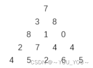 上图给出了一个数字三角形。从三角形的顶部到底部有很多条不同的路径。对于每条路径,把路径上面的数加起来可以得到一个和,你的任务就是找到最大的和。