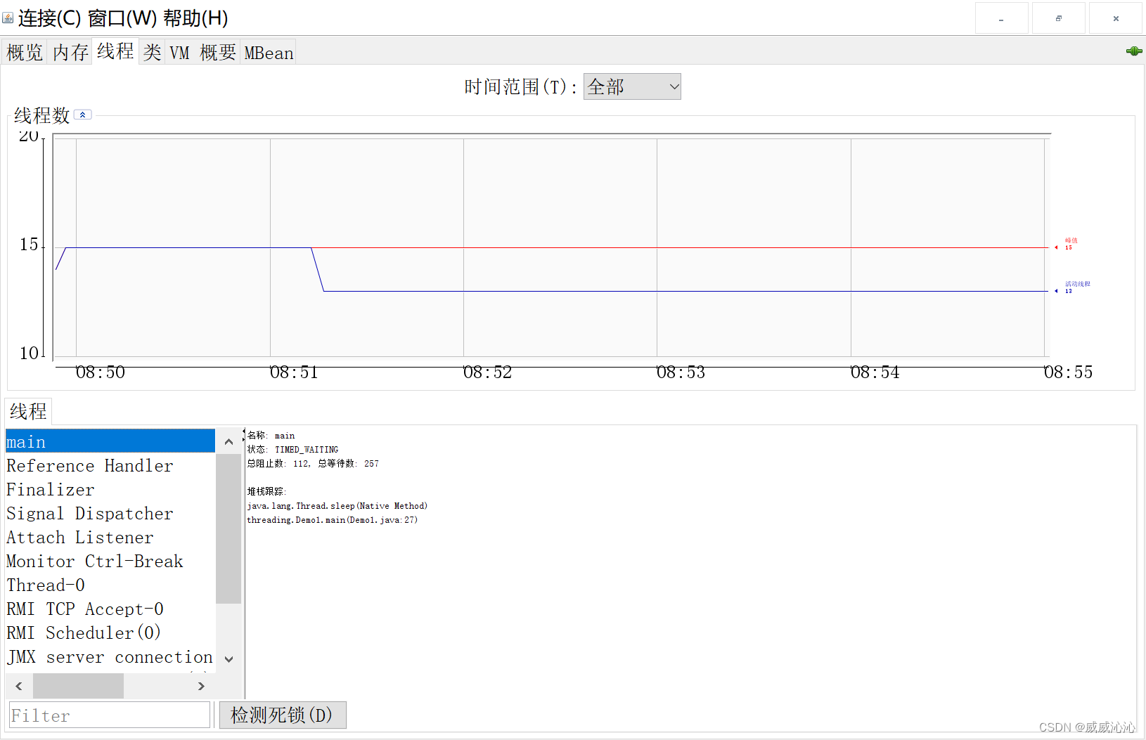 jconsole 命令查找可以查看:使用 jconsole 命令观察线程