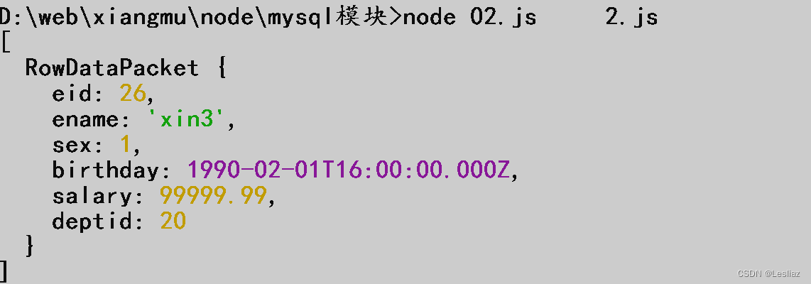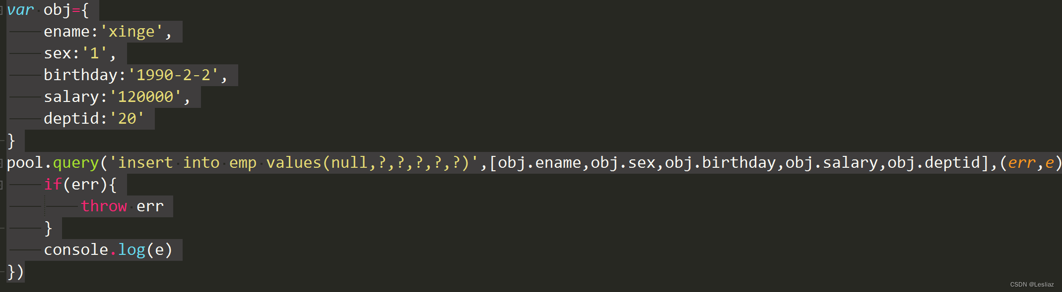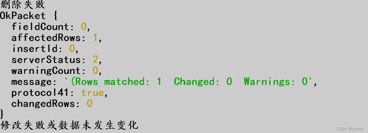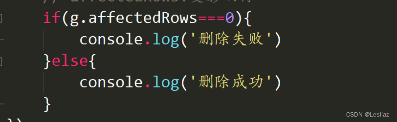 删除数据:结果是对象,需要通过affectedRows判断,如果值为0说明删除失败,否则说明删除成功