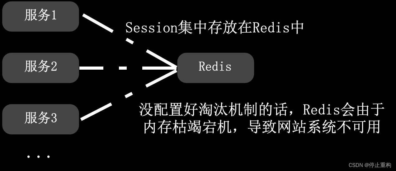 而且由于在线用户上来了,session量也会增加 ,如果存储共享session的redis服务没有配置好淘汰机制的话,那么扩展再多的后端服务 ,网站系统都会崩溃 。