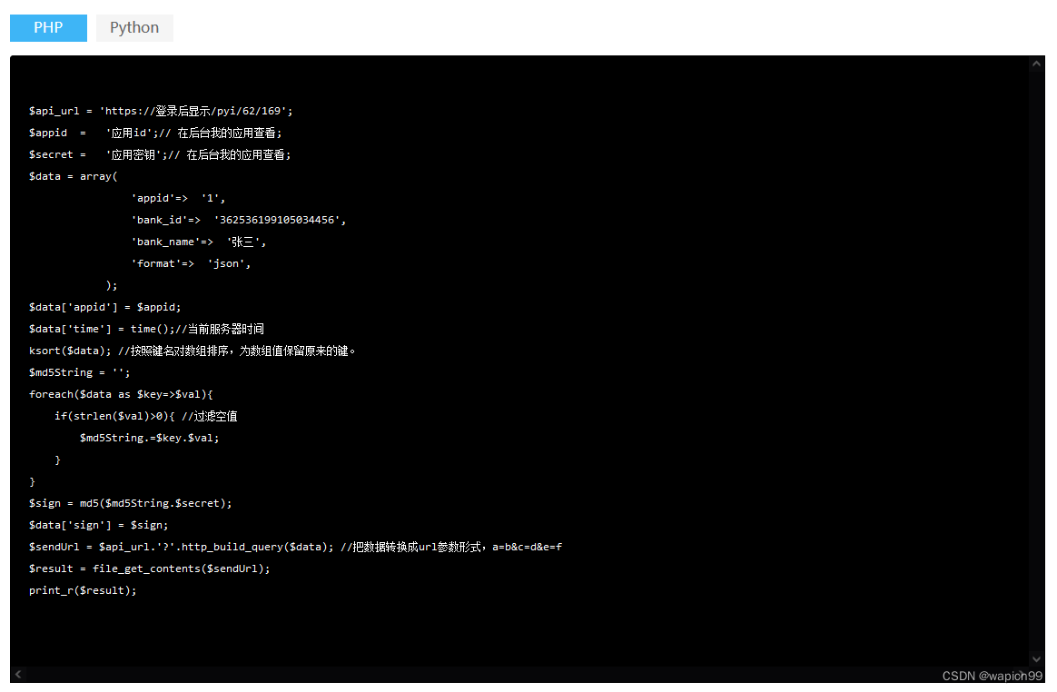 接口地址: https://www.wapi.cn/api_detail/102/313.html