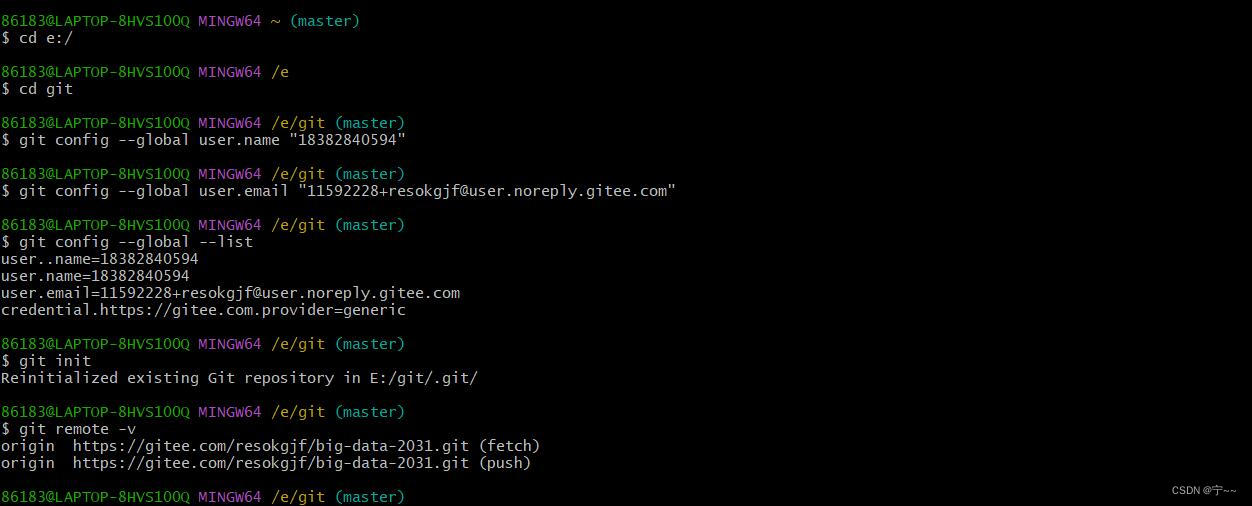 1. git config --global user.name " 账户名 " # 配置用户