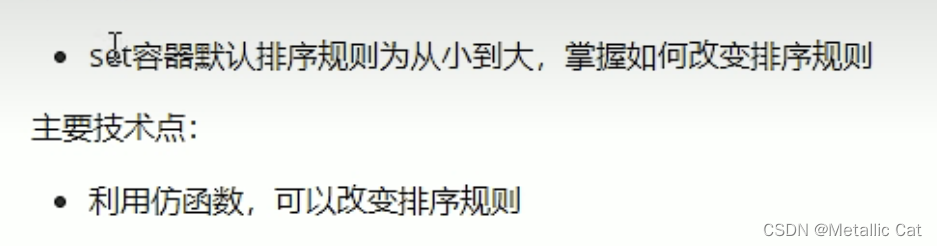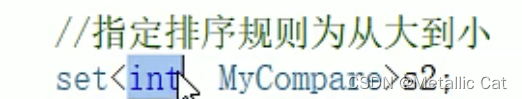 2.在类中重载函数调用符号(),这个重载函数中要有两个参数,这两个参数的类型和set容器中的元素的类型一致(一般将第一个参数命名为v1,第二个参数命名为v2),并且这个重载函数的返回值是bool值