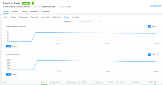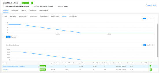 -- 只限制下行速度 [#22#root@**** ~/wondershaper]22 ./wondershaper -a enp0s3 -d 100 测试结果:限速后,写目标库单位写入行数和单位写入字节数都急剧下降,如下图: