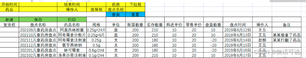 药房盘点记录: