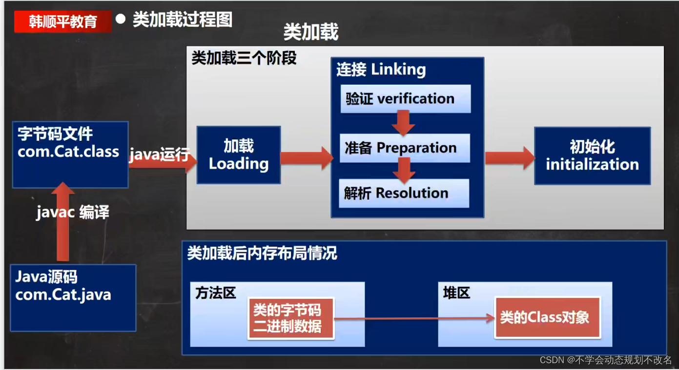 JVM会在该阶段对静态变量分配内存并默认初始化(对应数据类型的默认值如0,0L,null,false等)。这些变量所使用的内存都将在方法区中进行分配,例如static int a=100;