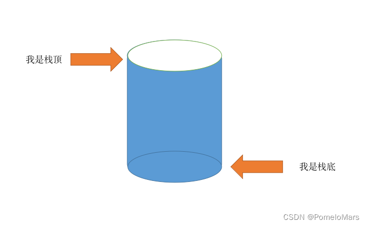 如果你觉得想象不出来它是什么东西,那你就拿出你的水杯来看看.水杯的杯口那就叫做栈顶,另一段就是栈底: