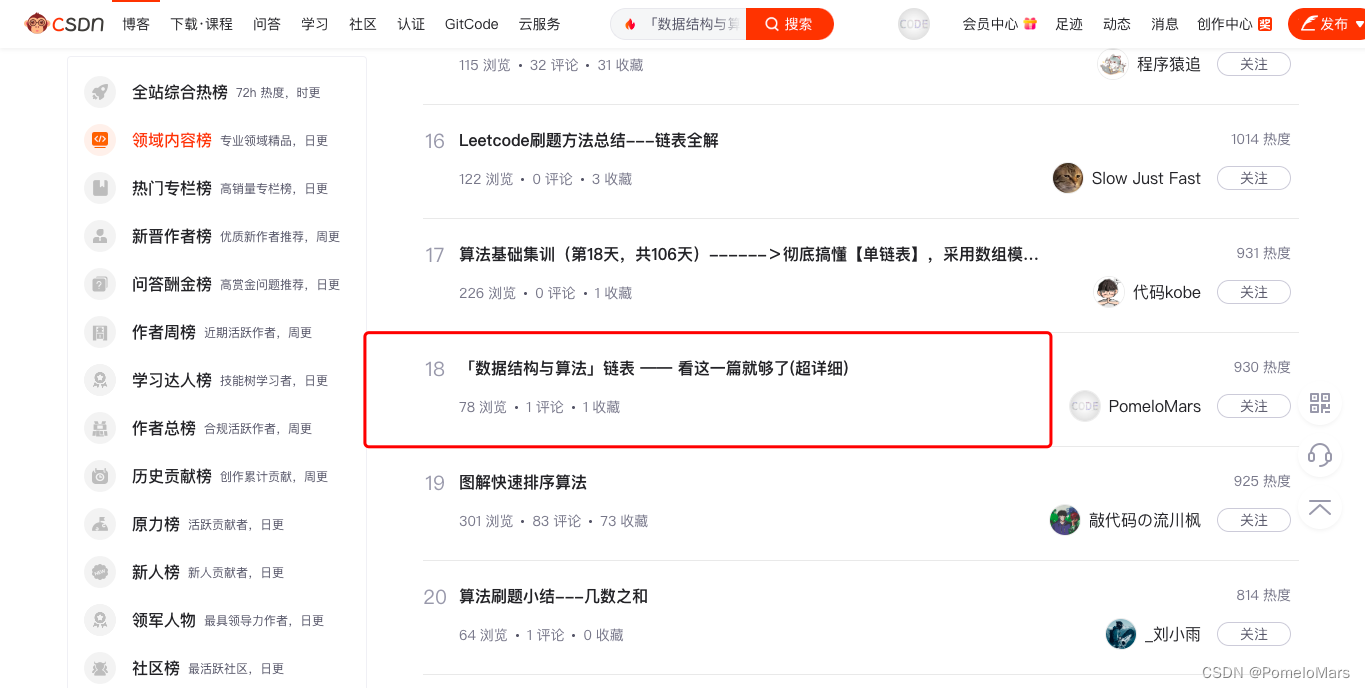 入选了数据结构与算法领域第18名!!!