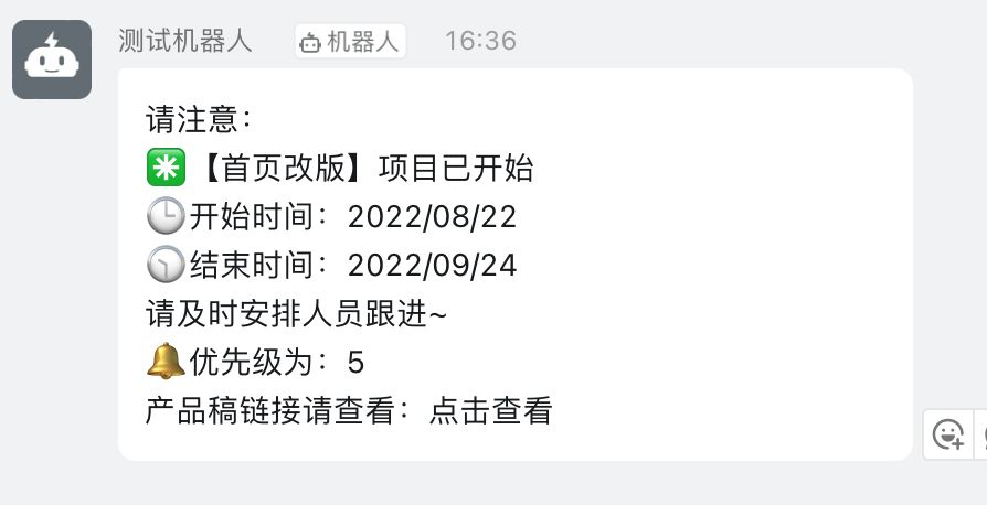 那么将会在项目开始时,自动在工作群内提醒对应的人员进行跟进。