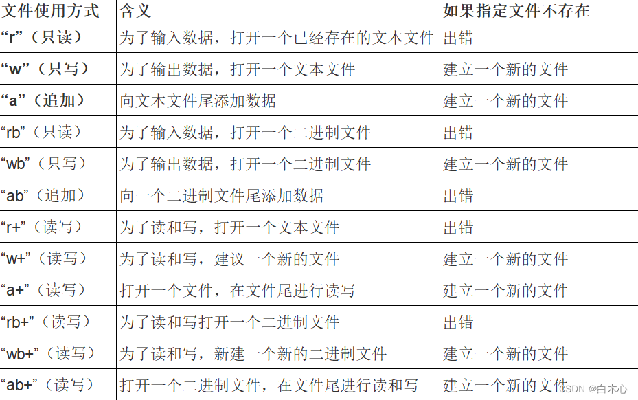 其中,const char * mode是指输入对文件操作的不同指令字符,即“打开方式”。