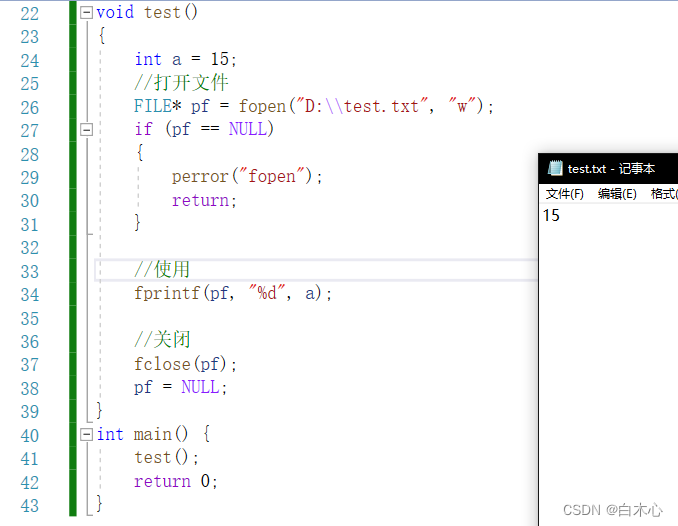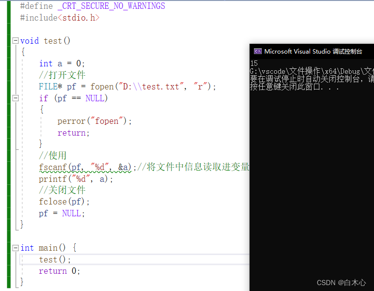 FILE* pf = fopen("D:\\test.txt", "r+");//注意此处需要使用读写,r+和 w+都可以。