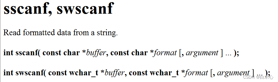 而sscanf和sprintf两个函数与上述的区别则在于,这两个函数并非从流中读取\写入数据,而是从字符串中读取\写入格式化的数据。