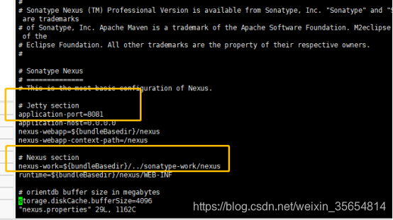 在conf目录vi nexus.properties 可以修改默认端口,工作目录一般不用改。改完保存退出。