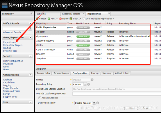 以上仓库如果不够用,可以自己新建仓库,同样可以新建用户、角色和权限。管理员给用户配置角色,角色可以添加权限,权限就跟仓库挂钩。这样就可以指定用户可以部署到哪些仓库,这个一般中小公司用不到,有兴趣自己可以尝试一波。