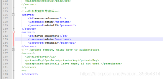 - server,用于配置私服的认证信息,参考第8点,用于发布构件到私服。