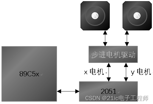 控制逻辑上,这里使用的方案是一片2051作为步进电机驱动,一片80C5x作为主控芯片实现产品功能,从而形成一个双机系统(如图2):