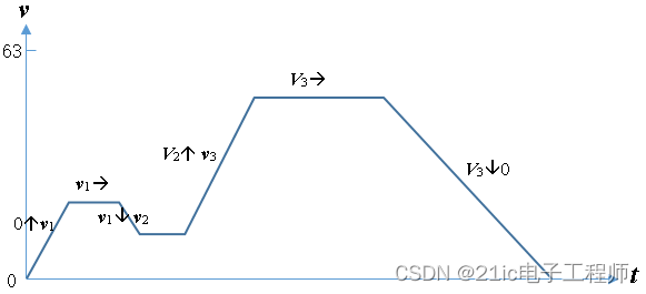 速度控制方式是指在实时控制时,只有目标速度,没有目标位置的控制方式。这种控制具有随意性。它可能是从一个速度到另一个速度的变化,也可能是保持某个速度的运动,而速度的变化可以是增速,也可以是减速,一个速度与另一个速度可以是0,也可以不是0(如图4)。